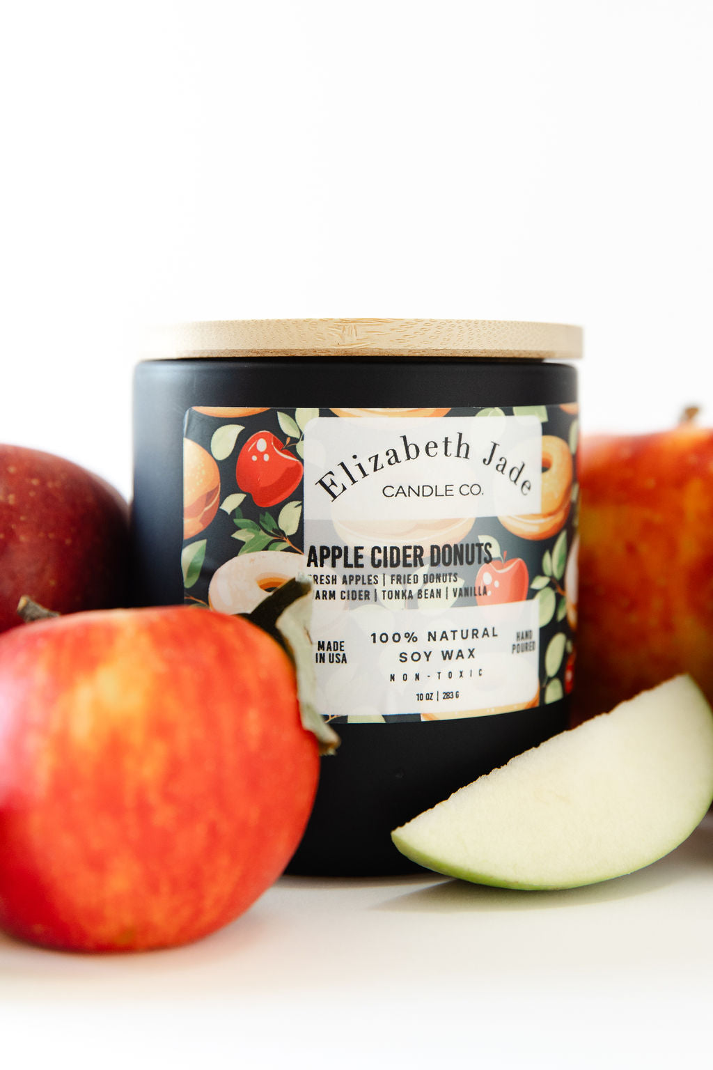 Satisfy your sweet tooth with Apple Cider Donut, a warm, mouthwatering fragrance that fills your space with the comfort of fall treats. This candle opens with the crisp scent of fresh apples and a sprinkle of cinnamon, setting the stage for the cozy middle notes of warm apple cider and fried donuts. As it burns, hints of rich tonka bean, smooth vanilla, and sugar crystals linger, creating an irresistible, bakery-fresh aroma. Perfect for autumn lovers and anyone craving a touch of sweetness, Apple Cider Donut brings the charm of a crisp fall day to your home.