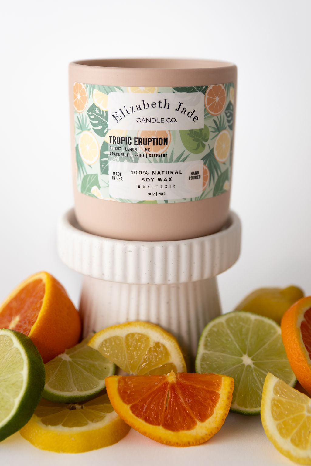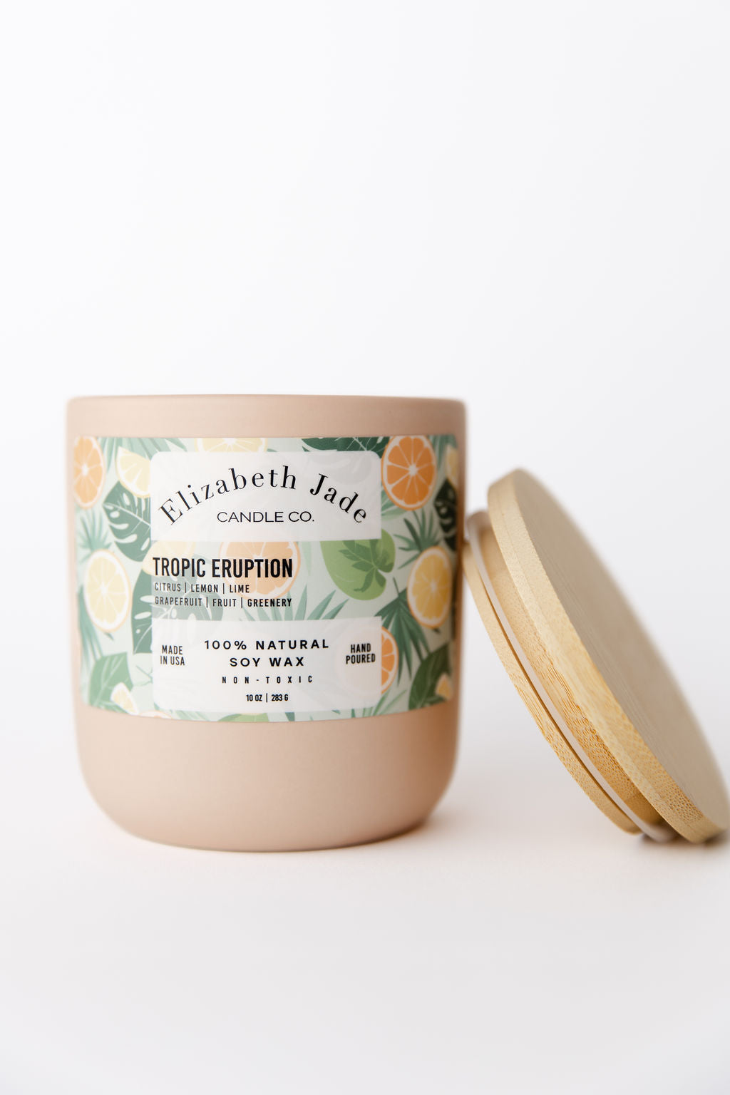 Ignite your wanderlust and invigorate your senses with Tropical Eruption—a vibrant celebration of sunshine, ripe fruit, and the wild, untamed beauty of nature. This bold and energetic candle captures the essence of an exotic getaway, where citrus groves meet lush greenery and the air hums with life and color. Bursting with brightness and layered with complexity, Tropical Eruption brings the heat, the zest, and the joy of tropical days right into your home.